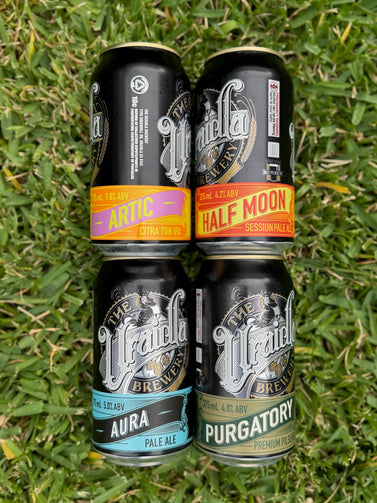 This pack contains 4 delicious 375ml cans of: 4.8% Purgatory Pilsner, 4.2% Half Moon Pale, 5% Aura Pale Ale and 7.8% Artic Citra TDH IPA.